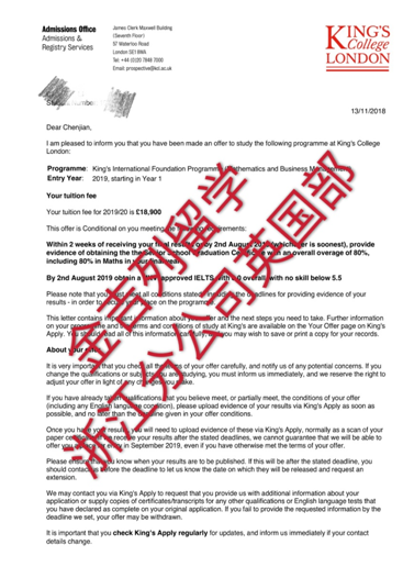 前不久,浙大附中的 LI 同学,在我们金吉列留学的帮助下,顺利拿到了世界 TOP30 伦敦国王大学录取!同时也获得了世界 QS 排名 69 位的格拉斯哥大学录取!