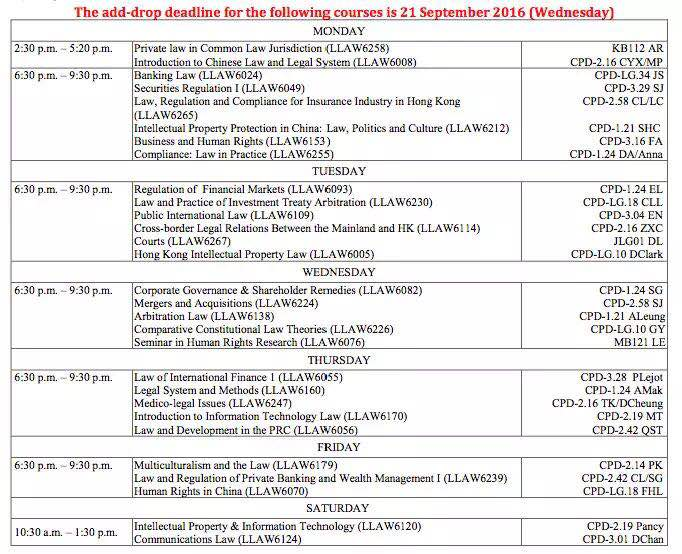 在申请的时候各个方向都是可以选取两种修读方式 full-time 和 part-time ,但是 local 基本都会选择 CFL。所以我的同学就包括内地同学、各国的同学、香港本地的律政司、投行、律所、银行、 SFC 等等,每晚上课的时候抬头一看,都是职业装哈。莫名的感觉过上了香港精致的中环生活。