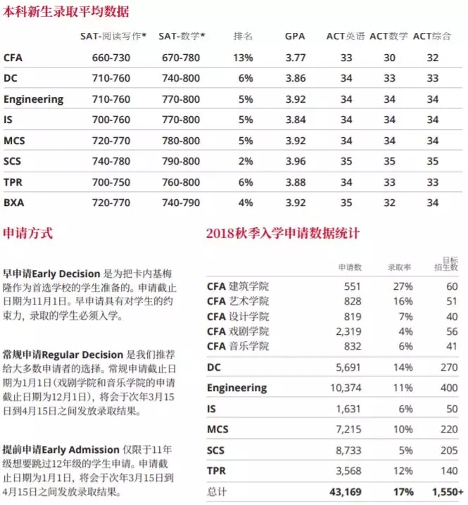 理工强校卡内基梅隆大学(CMU)也在同一天发榜。CMU没有公布官方早申数据。 在上一个申请季,CMU申请数据如下: