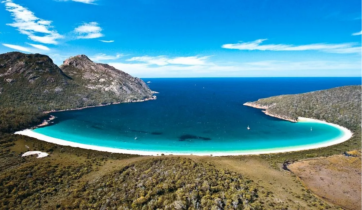 而在看到Wineglass Bay的时候,仿佛一切的努力都有了回报。眼前景观豁然开朗,沙滩与大海形成轮廓分明的新月形,犹如盛满美酒的水晶杯,等待着我们去品尝。海天一色的辽阔天地,白云袅袅,林涛阵阵,大海的狂野与宁静尽收眼底,彷佛已经醉倒在酒杯湾的美酒之中。当然啦,这里还是潜水和垂钓爱好者的天堂哦,如果你也是爱好者之一,可千万别错过哦。