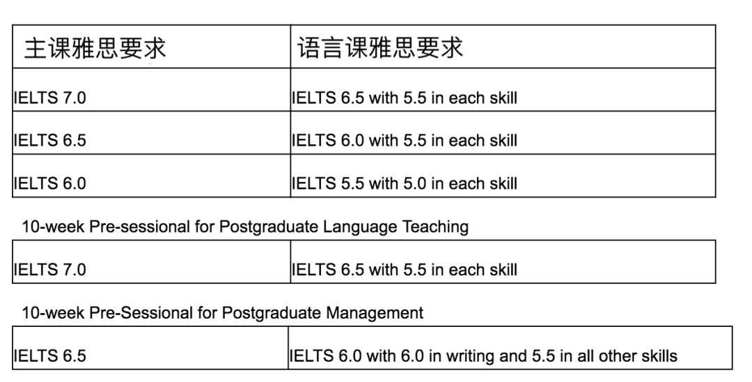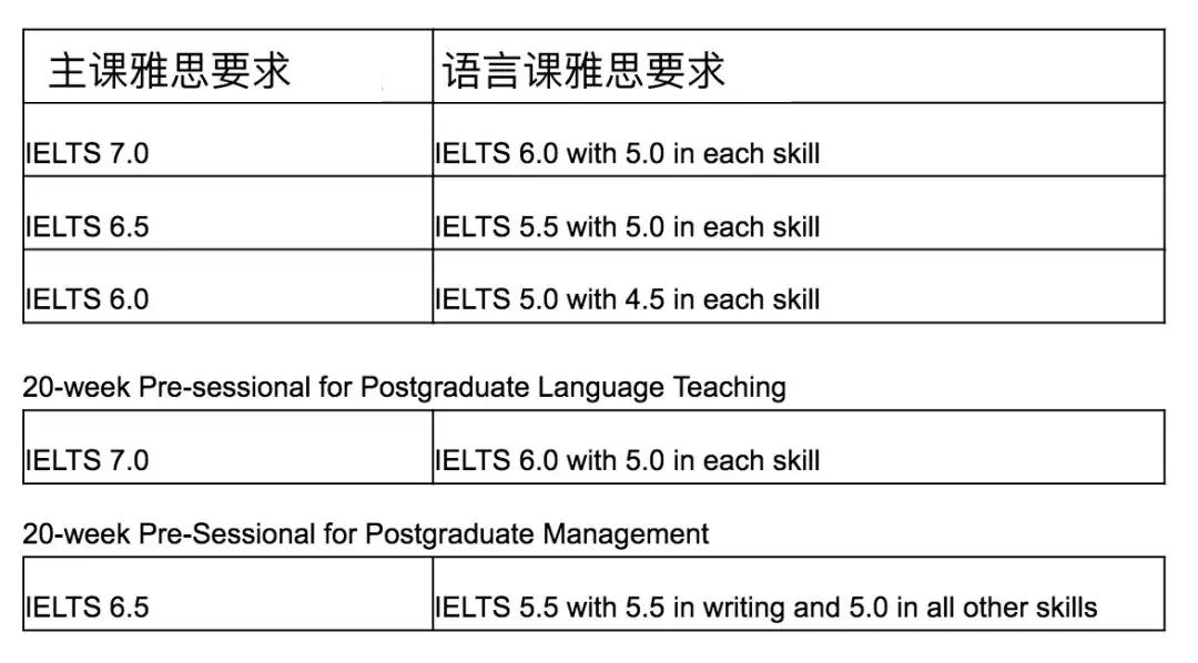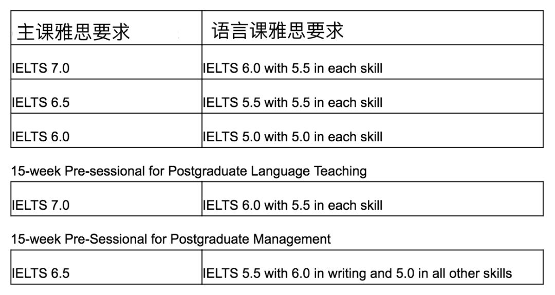 针对 2019Entry ,约克大学提供 4 种不同长度的语言课,具体要求如下: