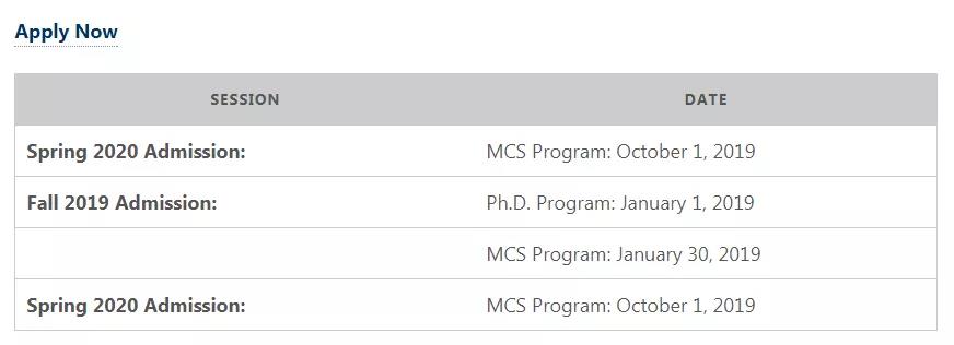 MS in Computer Sciences申请截止日期2月1日,博士项目12月15日截止。托福不低于100分,有单项要求,不接受雅思,需要GRE。 三封网推,最低要求是GPA 3.0/4.0,GRE V153 Q155 AW3.0,会卡托福成绩。