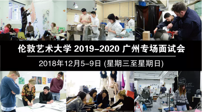 申请入读2019年入学的本科预科、本科和研究生等课程的申请者请注意了,伦敦艺术大学面试官将于2018年12月5-9日 ( 星期三 至 星期日 ) 在伦敦艺术大学授权广州招生代表处进行面试录取学生,请同学们尽快联系我们,以便提前审核申请材料,做出面试时间的安排。