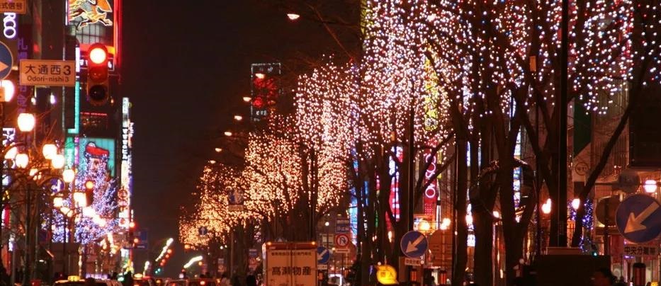 每年进入冬季,札幌市也进入了霓虹灯的季节,银装素裹的大街上加入了霓虹的色彩,各种时尚的元素足以吸引眼球。整个城市也充满了圣诞的气氛。