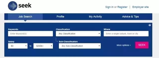 ➤Seek是新西兰最大的求职网站,它可以搜索城市、郊区的工作岗位和薪酬待遇。