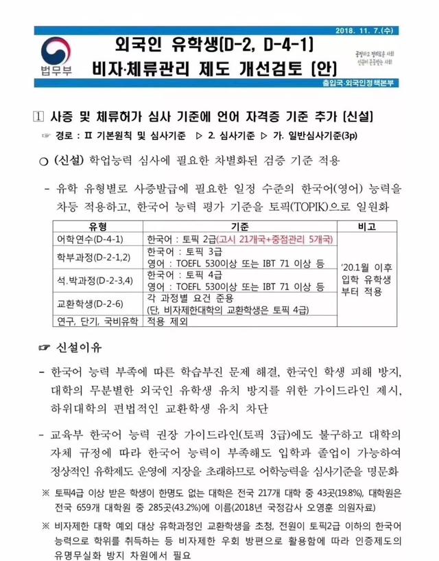 2018年11月7日,韩国法务部发出一条重要公示。看过内容后,给多年从事韩国留学行业的梁老师带来的震撼程度远超吴亦凡刷榜iTunes事件啊。话不多说,我严肃地先上文件。