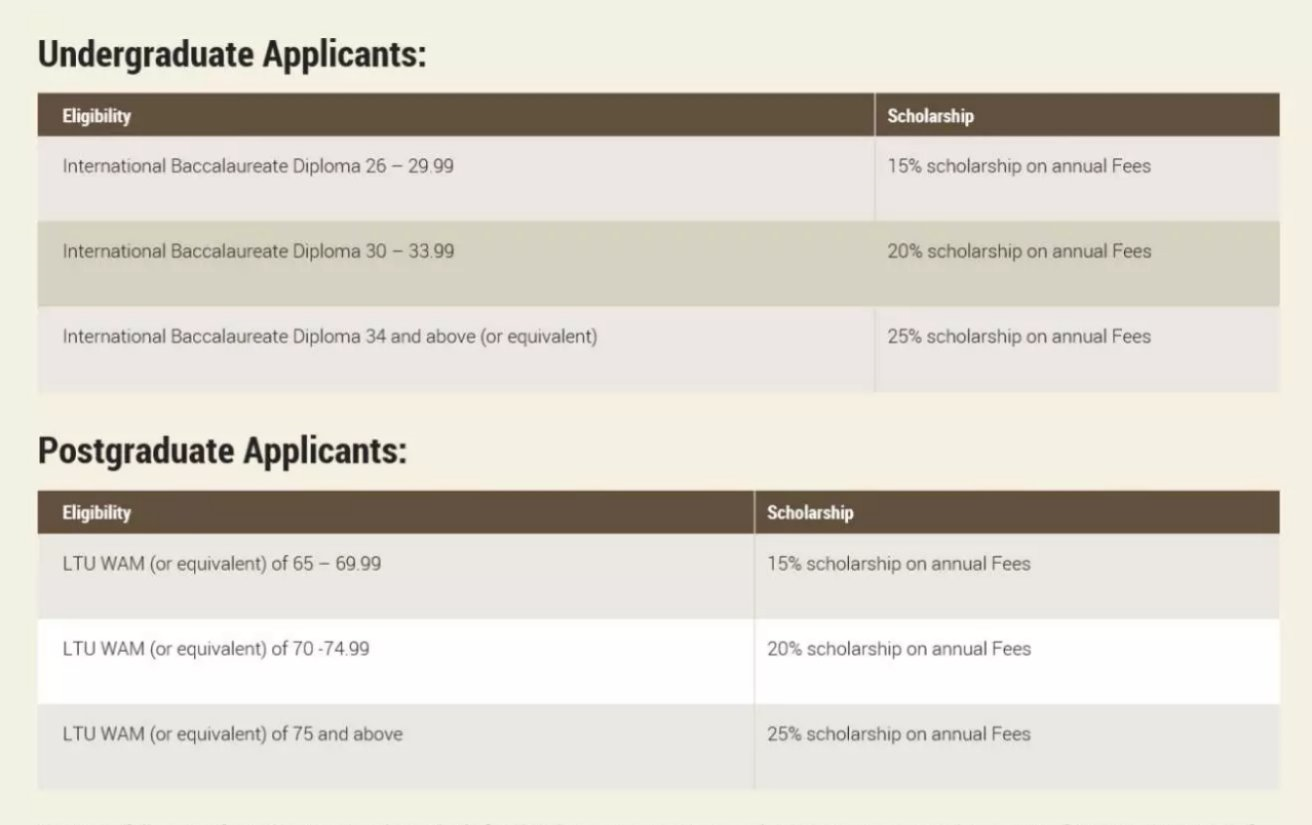 有意申请2017年乐卓博本科及硕士类授课课程的同学看过来,只要你的课程在奖学金课程列表中,满足入学学术背景要求和英语入学要求,且在之前的学习阶段达到如下分数要求(如图),即可满足申请资格!