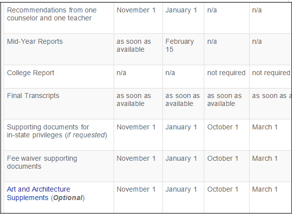 We o not accept resumes, research papers, or supplemental application items that o not fit the criteria for arts supplements.
