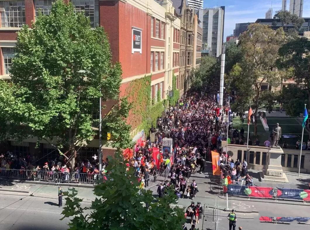 上万人的队伍将从RMIT各主要教学楼出发,沿着墨尔本CBD的主干道Swanston St浩浩荡荡的游行去!