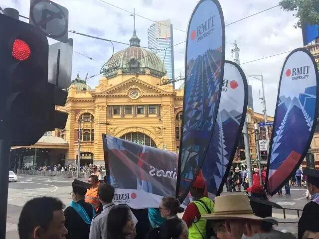 就连墨尔本的街道旁就全部甩起了RMIT的旗帜~