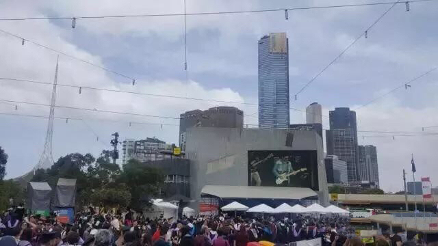 广场上,整个LED屏幕都在恭喜RMIT的毕业生们!今天,联邦广场的大LED上都是我们!整个City都被我们承包了