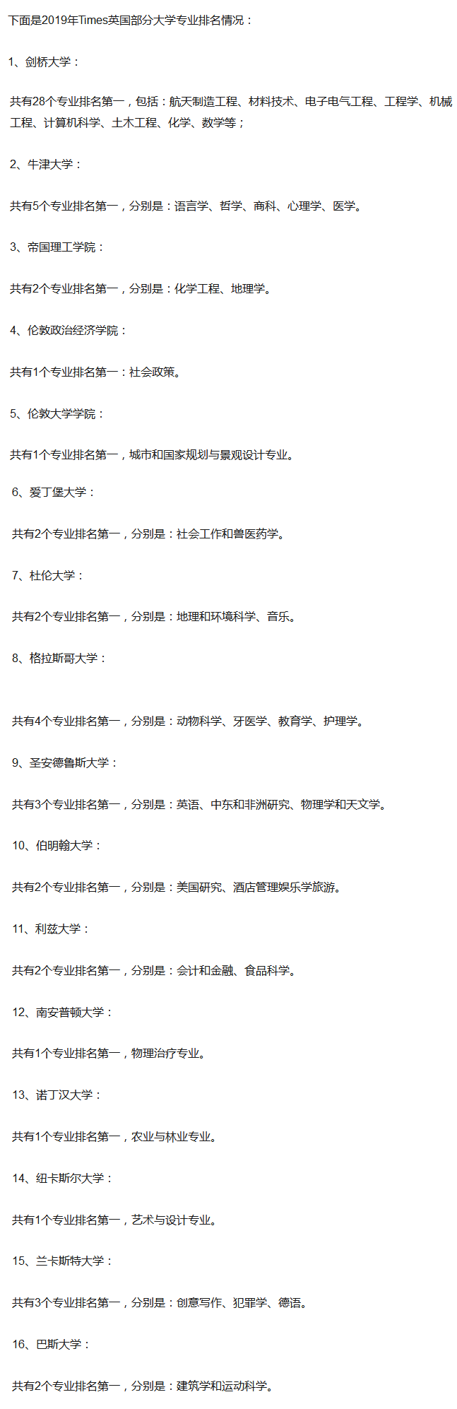 专业的排名越来越成为大多数学生考虑的主要因素之一,那么巧莹老师今天带大家了解一下泰晤士报的专业排名情况!