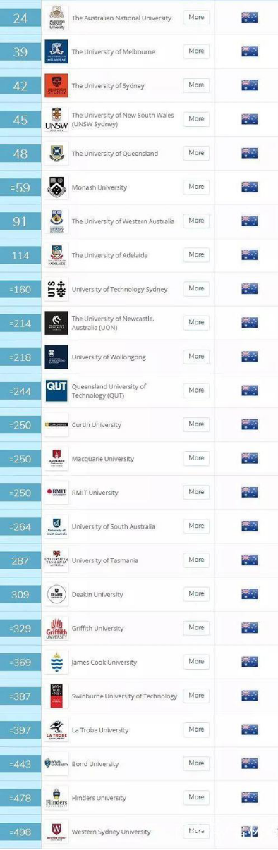 2019年QS世界大学综合排名—澳大利亚