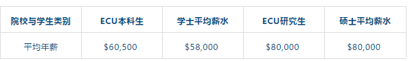 如下为统计的最新ECU与澳大利亚全国毕业生平均薪水统计,可以明显看出本科毕业生学生起薪名校高于全国平均水平: