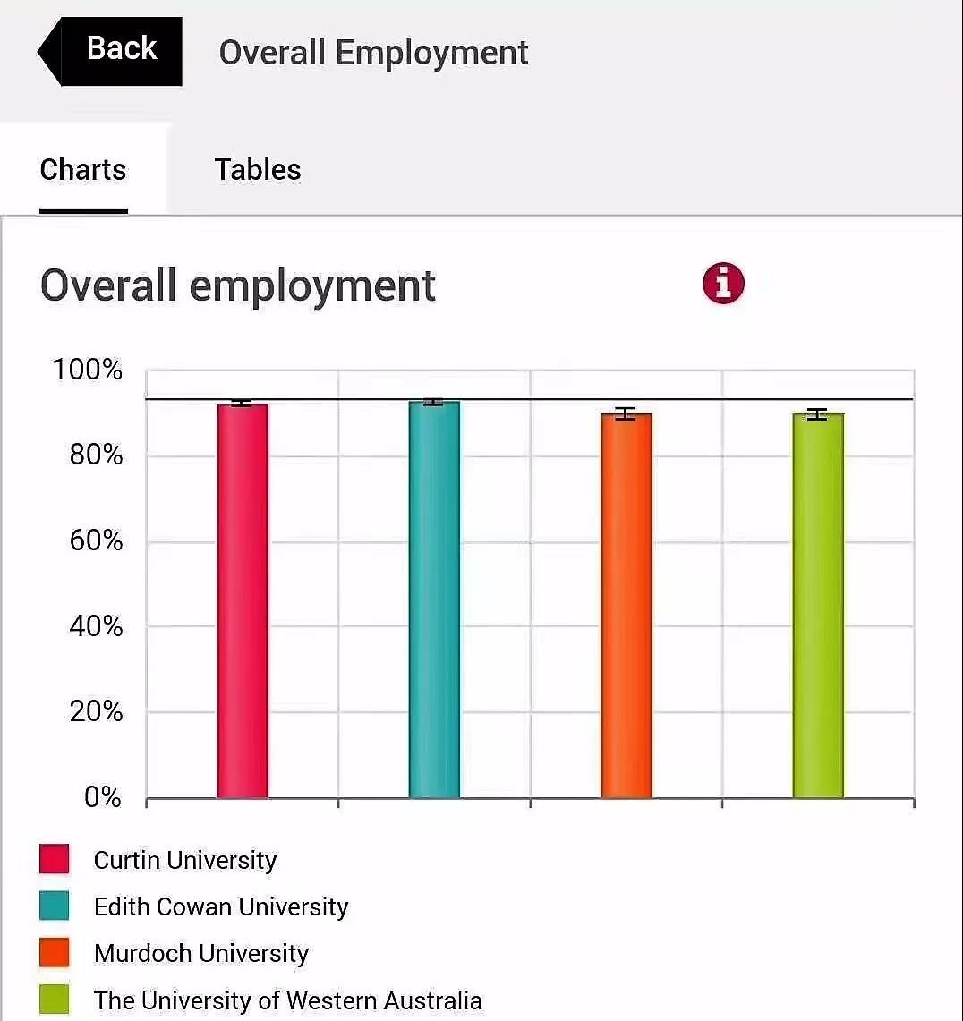 另外,如下图所示在QILT Grauate Destinations Survey 2015 an Grauate Outcomes Survey 2016-2017统计中,埃迪斯科文大学毕业生整体就业率领先西澳洲所有大学,成为首屈一指的就业明星院校。