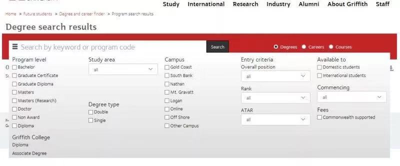 今天带大家了解使用格里菲斯大学的“Degree an career finer”,帮助您在第一时间全方位搜索官方公布的准确课程信息。在给大家便捷的用户体验同时,要告诉大家国际部录取部门在审理申请时,也是以官网信息为依据哦。