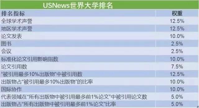 U.S. News世界大学排名与 QS世界大学排名 、 世界大学学术排名(ARWU) 和泰晤士高等教育世界大学排名(Times Higher Eucation)被视为目前世界最具影响力的四大排名。此次排名对来自全球75多个国家的院校进行排名,衡量了院校的研究表现以及在全球和地区的声誉,并列出其中最佳的1250所。学生们可以利用这些排名来探索本国以外的高等教育选择。