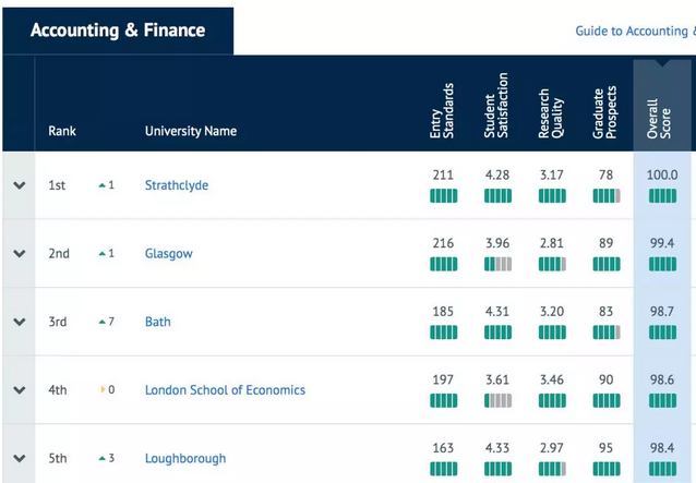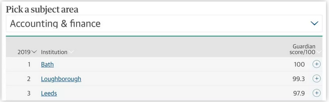 当然,如果大家担心一个榜单说服力不够,还可以参考其他权威排名。同样的专业方向在2019年卫报的排名情况变成了下图: