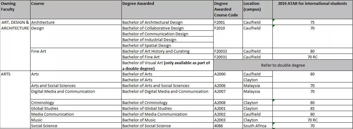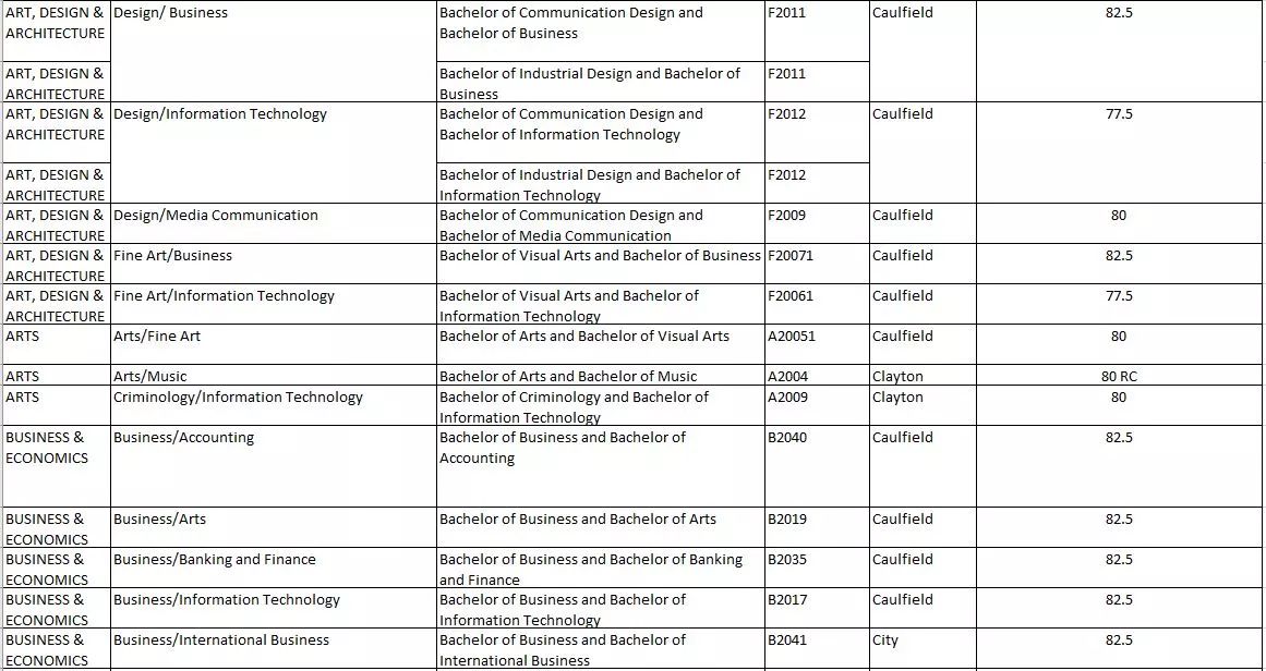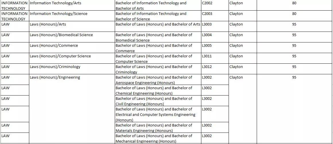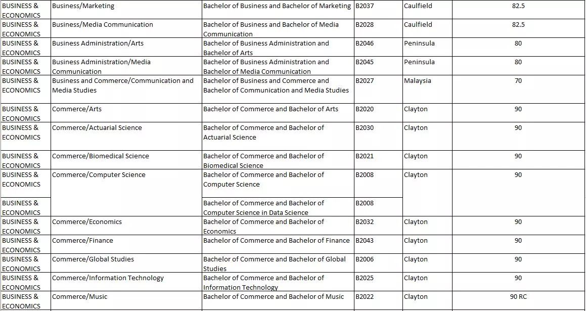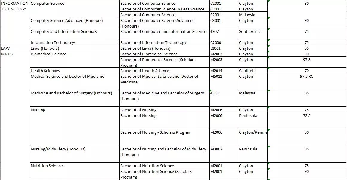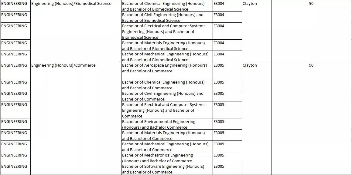 尚未达到蒙纳士大学本科录取的同学们,则可以考虑申请快捷课程第二期,顺利毕业且达到蒙纳士大学相关课程的入学要求后,学生可直接升入大学本科二年级。其中,可通过快捷课程第二期升至本科二年级的专业院系包括: