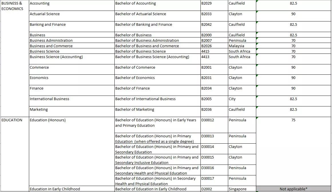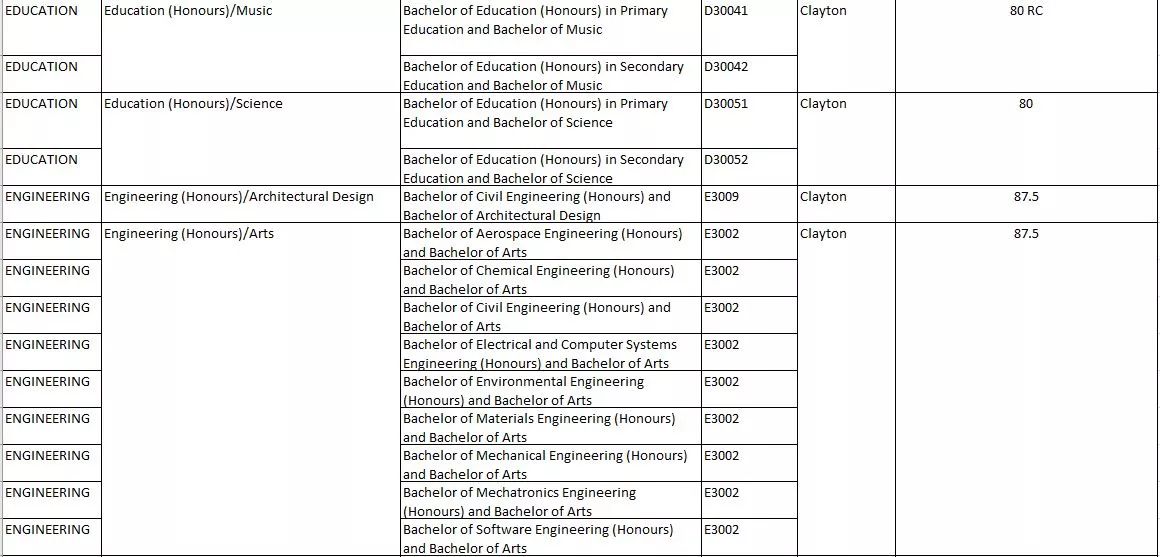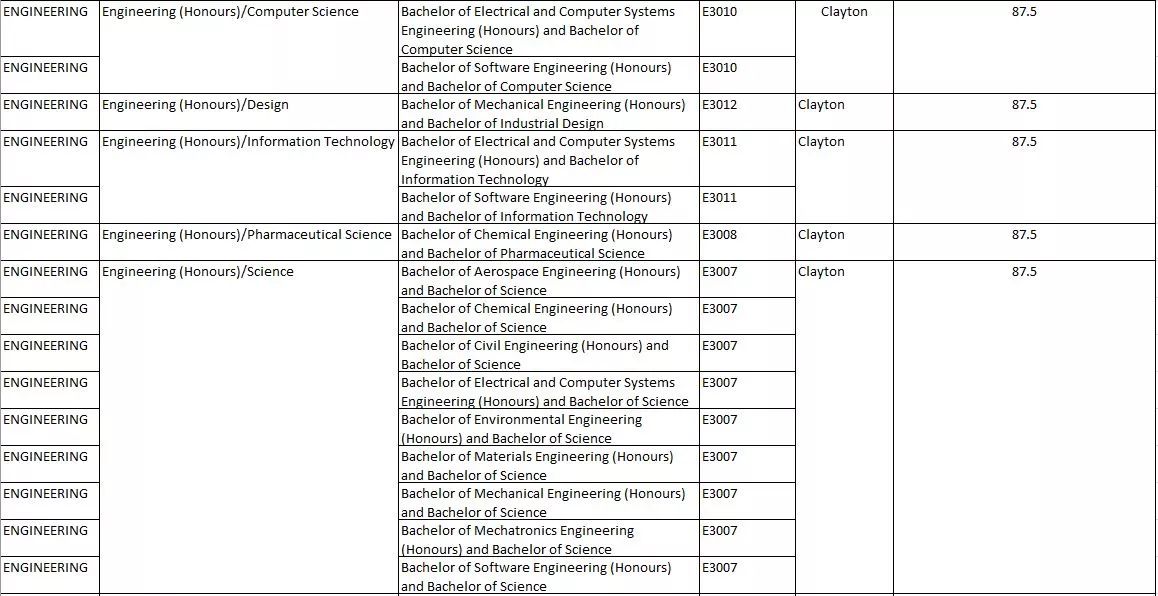并非所有蒙纳士大学课程都接受英语直升课程(MEB)。