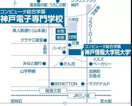 神户电子专门学校位于关西地区神户市,紧邻大阪和京都。