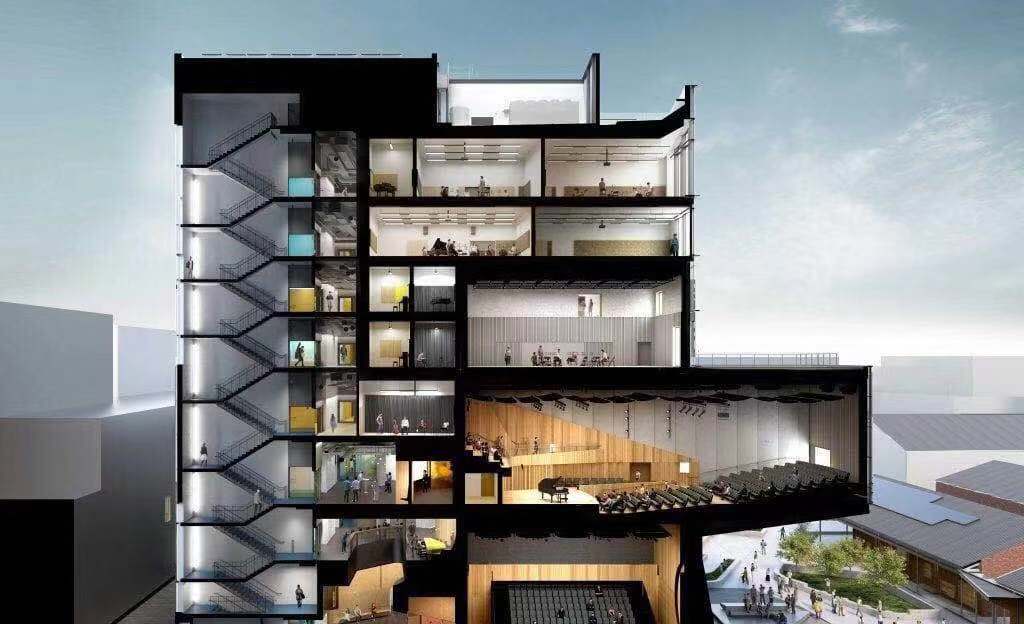 这座造价1.09亿澳元的新建筑将成为墨尔本大学Melbourne Conservatorium of Music的所在地。它位于墨尔本艺术区,是世界上艺术和文化组织最集中的地区之一。将于明年二月正式向教职员工和学生开放。