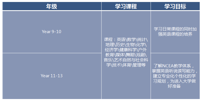 • 学制: Year 7-13