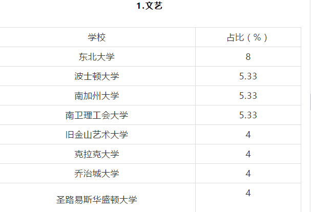 对于文艺类的学生来说,GPA成绩在3.0-3.7之间的他们收获南加州大学,波士顿大学,东北大学等院校的数量比较多。和GPA在3.7分以上的学生相比,他们的语言成绩要更为出众。