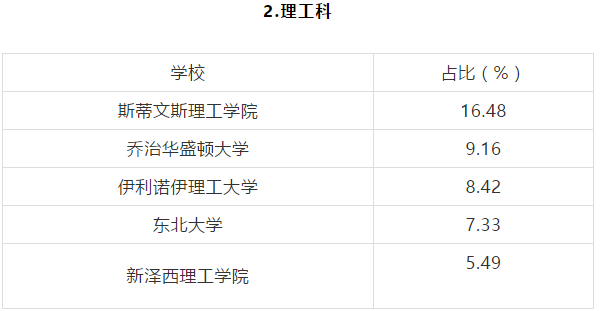 GPA在3.7分以上的理工科学生,申请南加州大学,哥伦比亚大学,宾夕法尼亚大学,西北大学,密歇根大学安娜堡分校,约翰霍普金斯大学,圣路易斯华盛顿大学的offer最多。