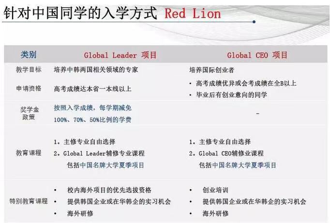 红狮项目是汉阳大学针对很多有实力的同学们准备的,可谓是专为中国留学生打造的高端留学项目:
