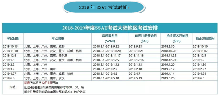 SSAT: 全称Seconary School Amission Test美国中学入学考试,是美国、加拿大私立中学的申请者所必须具备的一个考试成绩。主要考察学生的数学、语文、阅读理解、逻辑思维和发展潜力。由Amission Test Boar命题。针对不同年龄的学生SSAT考试分为不同的登记,高级(upper level)适用于就读8-11年级的学生,低级(lower level)适用于目前就读5-7年级的学生。