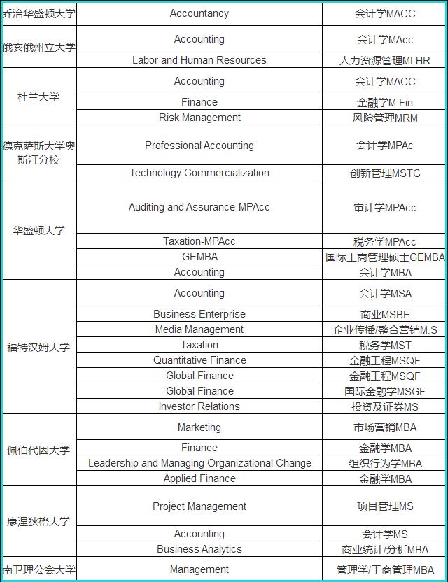 推荐院校:康奈尔大学、凯斯西储大学、纽约大学、圣路易斯华盛顿大学、维克森林大学、埃默里大学等。