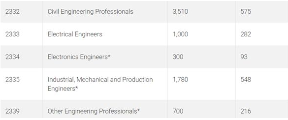 移民专业几乎涵盖工程所有专业,截止目前,所有专业的配额都才用了不到一半,移民配额充足。
