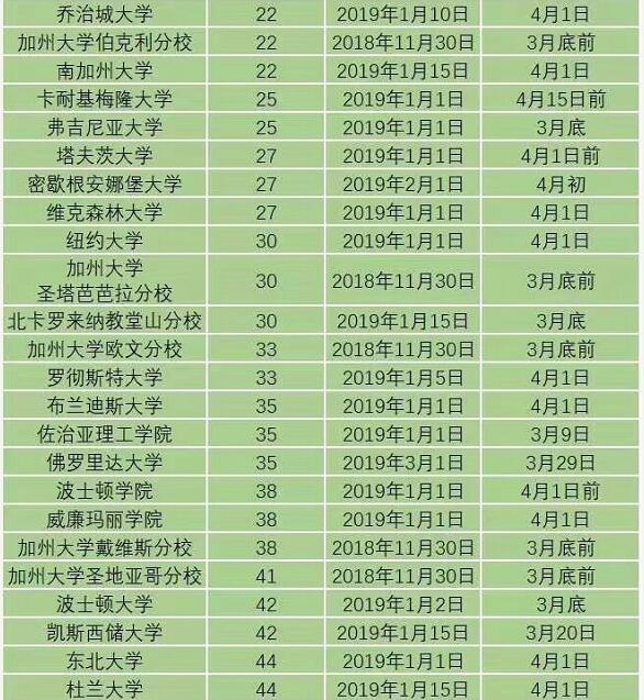 众多学生和家长都在焦急的等待学校的录取消息,今天送给大学美国前100大学常规录取截止日期和放榜日期。