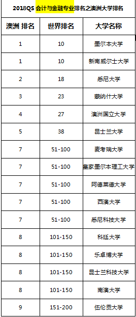 会计与金融专业不止在国内火热,也越来越受到国际留学生的喜爱,来看看澳洲大学会计与金融专业的QS排名。