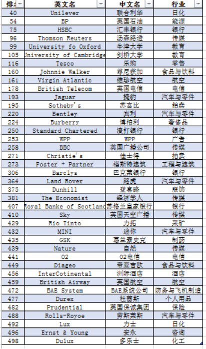 上榜的英国企业大多都是创立历史比较长的传统企业。其中上榜最多的行业分别是汽车与零件、传媒和银行,来英国学习相关专业肯定没错!