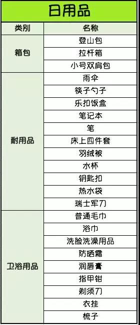 瑞士军刀:在各种场合都能用到,推荐带,但是不包括剪刀(剪刀有极大风险会被海关工作人员扔掉)。