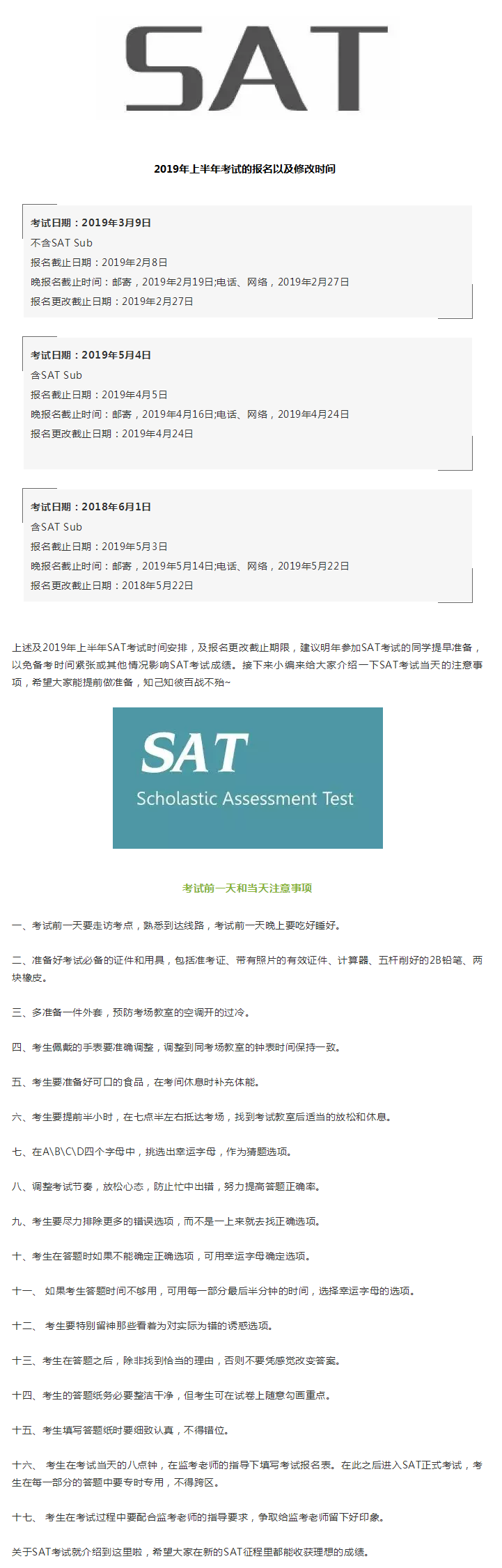 今天整理了2019上半年SAT考试报名截止时间,希望可以和大家做一个参考。