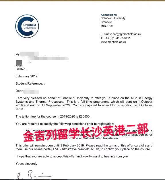 从2019年全新的工作日开始,一波波的录取offer送达到了学生的手中。这不,克兰菲尔德大学的录取offer又到了。