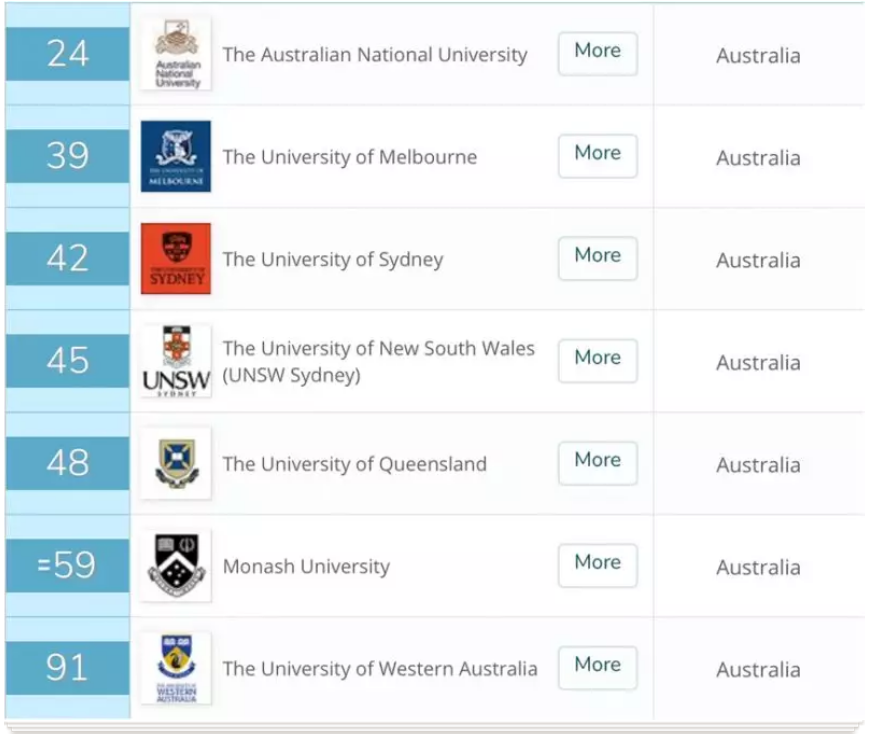 今年澳大利亚有7所学校进入了世界Top 100,澳大利亚国立大学(24名)和墨尔本大学(39名)仍旧占据着前两名的位置,悉尼大学(42名)在今年排名中显著上升,位列第三,新南威尔士大学(45名)、昆士兰大学(48名)、莫纳什大学(59名)、西澳大学(91名)紧随其后。 2018-2019年QS世界大学排名 相对于2017-2018年的成绩,澳大利亚今年的Top 100大学在保证数量的基础上,排名普遍有小幅度提升。其中悉尼大学上升8名,墨尔本大学、悉尼大学、莫纳什大学和西澳大学均有1-2名的进步。