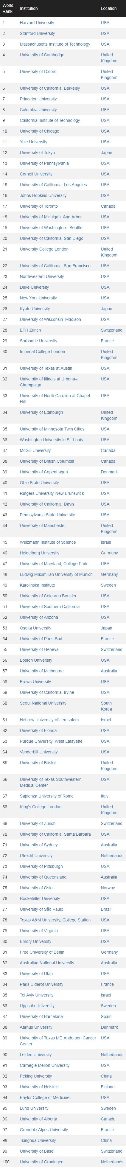 在世界前一百名高校中,美国共有51所大学入围,占去了榜单的半壁江山。