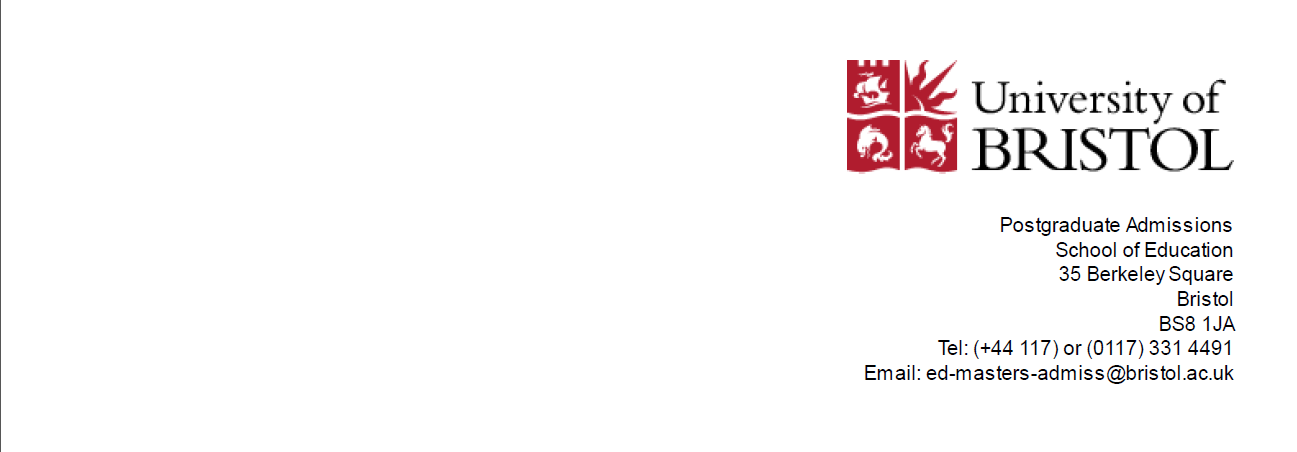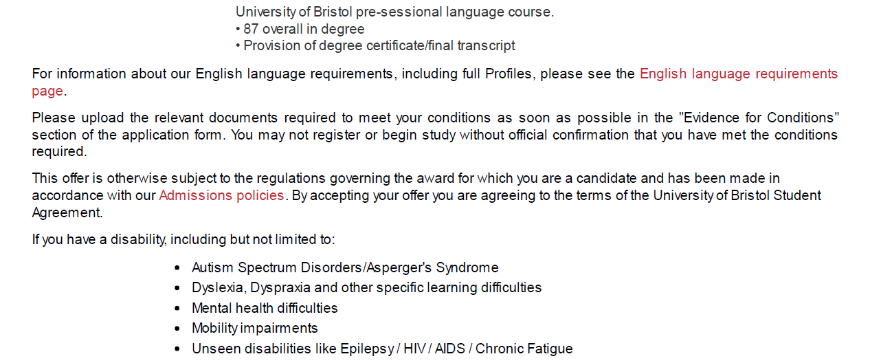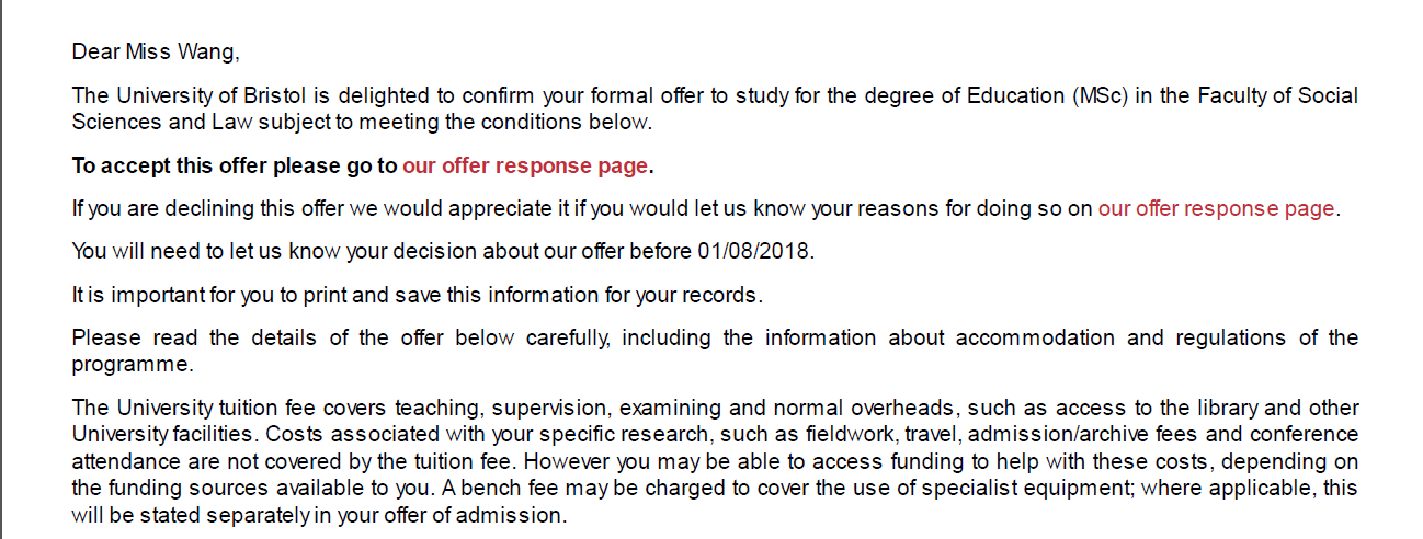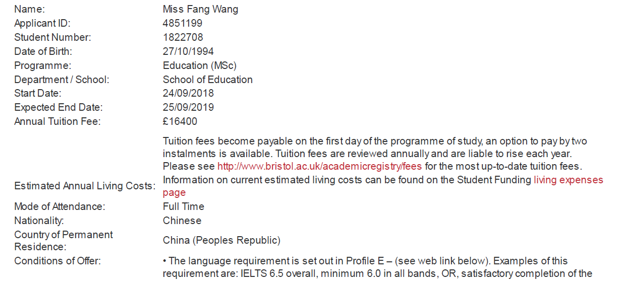 录取英国布里斯托大学教育学,con 85%,雅思 6.5,单项 6.0