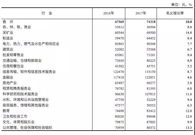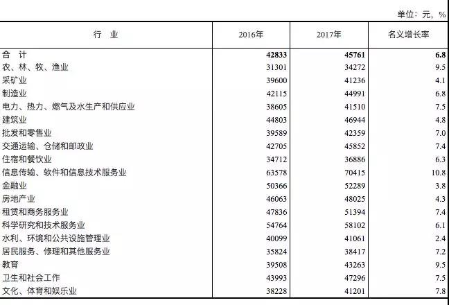 年平均工资最高的三个行业分别为全国平均水平的1.79倍、1.65倍和1.45倍,分别是: