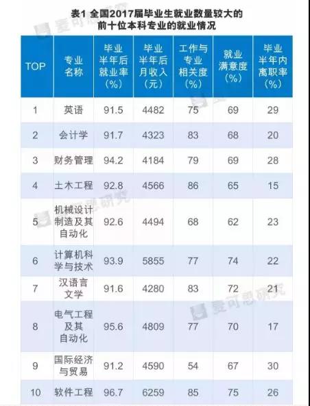 据麦可思数据统计,“软件工程专业”入选2017届毕业生就业数量较大的十个本科专业之一,其中,软件工程专业就业率最高(96.7%)。