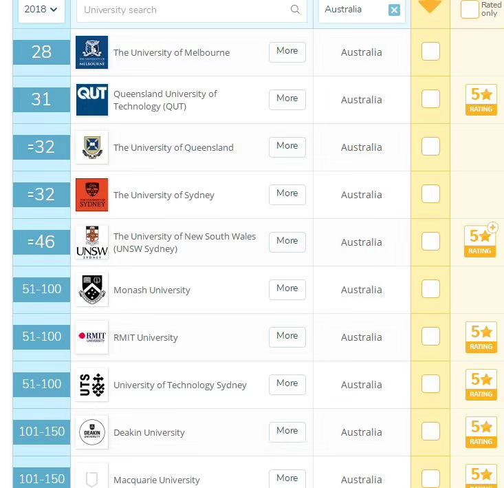 接下来就是要看看澳洲关于传媒类的排名,墨大依然是老大,昆士兰科技大学的传媒专业也是很牛的,以及皇家墨尔本大学的设计方面也是厉害的,