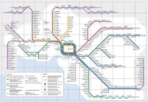 下图:最新墨尔本铁路线路图,白底部分为1区+2区!