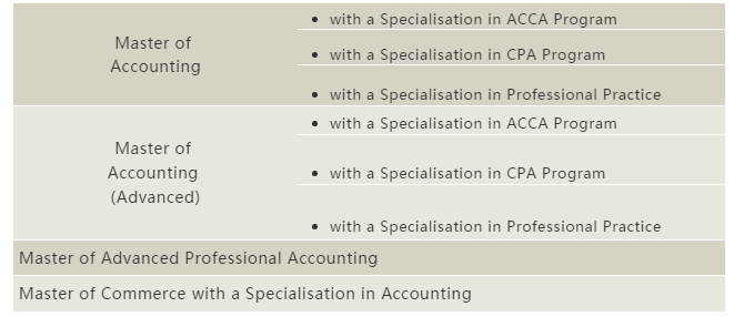 而仅【会计】硕士课程就开设了4个学位,3种课程方向,是澳大利亚开设【会计】研究生课程规模最大的学校之一。研究生阶段课程包括: