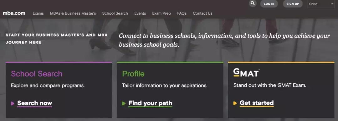 打开GMAT官网: http://www.mba.com ,在首页选择 "注册GMAT考试