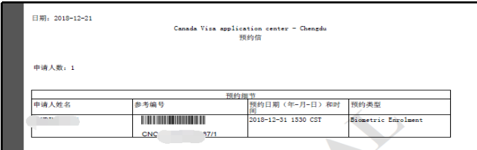 录指纹最重要的在于,需要提前预约,预约后会有一封预约信,请见以下图。去录指纹的时候必须带着预约信,否则无法进行指纹录入