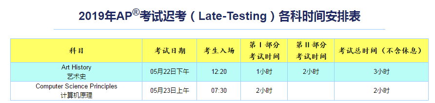 • 2019年AP考试延迟考试时间:5月22日和5月23日